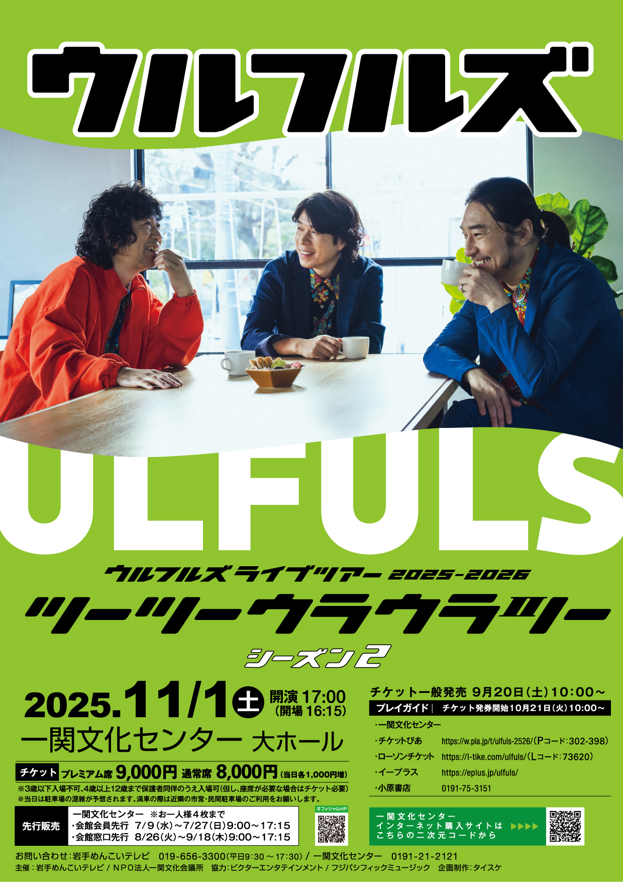 主催:岩手めんこいテレビ/NPO法人一関文化会議所 協力:フジパシフィックミュージック/ビクターエンタテインメント 企画制作:タイスケ お問い合わせ めんこいテレビ TEL:019-656-3300 ー関文化センター TEL:0191-21-2121