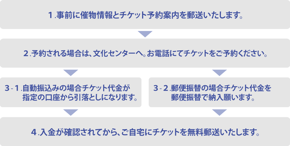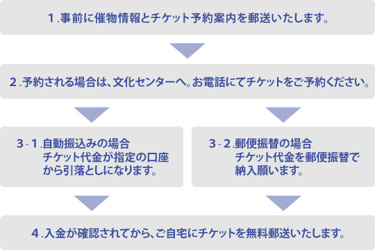 … 文化センター催物案内や、チケット発売情報などをご自宅に郵送いたします。 - チケット優先電話予約サービス!